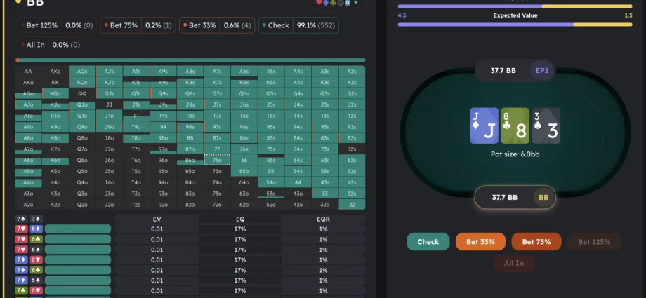 This is a crucial point beginners often miss. A solver doesn’t give you a single “correct” move. It provides a range of hands to take each action with, and a specific frequency for doing so.